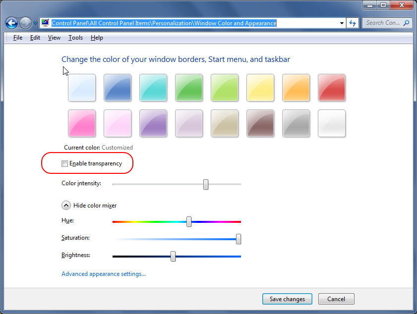 - Turn off transparency in Windows 7 (#transparency)